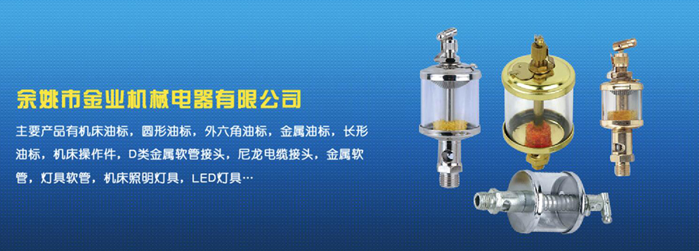 余姚市金業(yè)機(jī)械電器有限公司主要產(chǎn)品有機(jī)床油杯,圓形油標(biāo),外六角油標(biāo),金屬油標(biāo),長(zhǎng)形油標(biāo),機(jī)床操作件,D類金屬軟管接頭,尼龍電纜接頭,金屬軟管,燈具軟管,機(jī)床照明燈具,LED燈具,DGT型線路軟管防護(hù)套,TL型鋼制電纜手軌,電纜尼龍拖鏈,可調(diào)塑鋼冷卻管等產(chǎn)品,規(guī)格齊全,全部自制。望國(guó)內(nèi)外客戶前來考察:共同發(fā)展…
